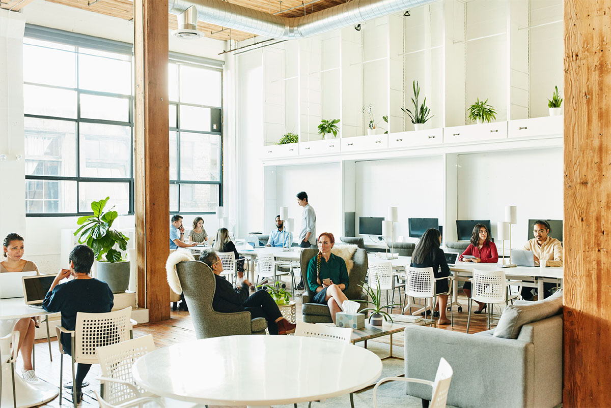 Flexible workspace for collaboration and coworking, or personal space for focus time.